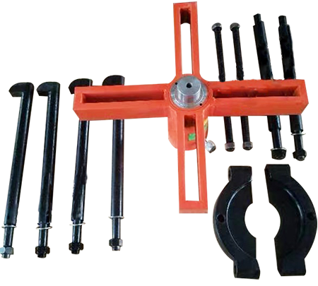 液壓分體式拉馬是一種以手動或電動油泵為動力通過高壓油管的傳遞使拉馬主體的大活塞向前推進(jìn),勾爪勾住被卸物承反作用力,鉤爪相對應(yīng)后退,把被拉物體拉出,實現(xiàn)拉卸之功能。